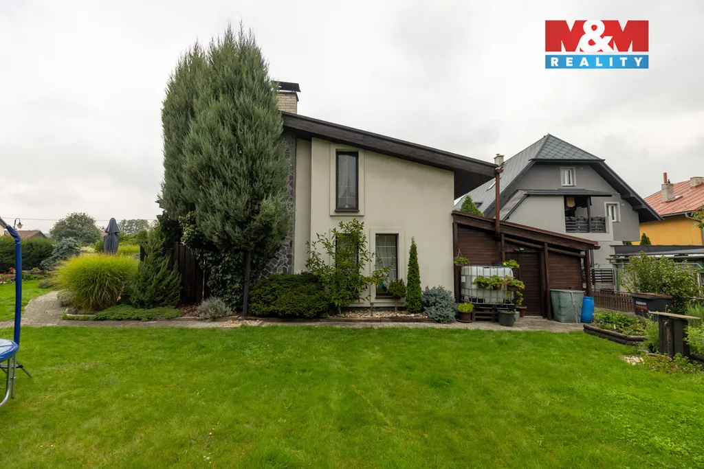 Nabízíme k prodeji luxusní rodinný dům v klidné části Třebovic na ul. Krameriova. Tento dům o celkové užitné ploše 298 m² zahrnuje dvě samostatné bytové jednotky a je ideální pro rodinné bydlení nebo investici. První jednotka v podkroví nabízí dispozici 3+KK s koupelnou, WC, šatnou a balkonem. Druhá jednotka, umístěná od mezipatra, zahrnuje tři pokoje, koupelnu, WC, velkou šatnu a balkon. Přízemí dominuje prostorný obývací pokoj s kuchyní a jídelnou, který je propojen s terasou a venkovním bazénem. Suterén obsahuje garáž a technickou místnost. Zahrada o ploše 884 m² nabízí přístřešek pro auta, okrasnou část a zahradní domek. Dům je vytápěn plynovým topením s radiátory KPT-D Hydronic.