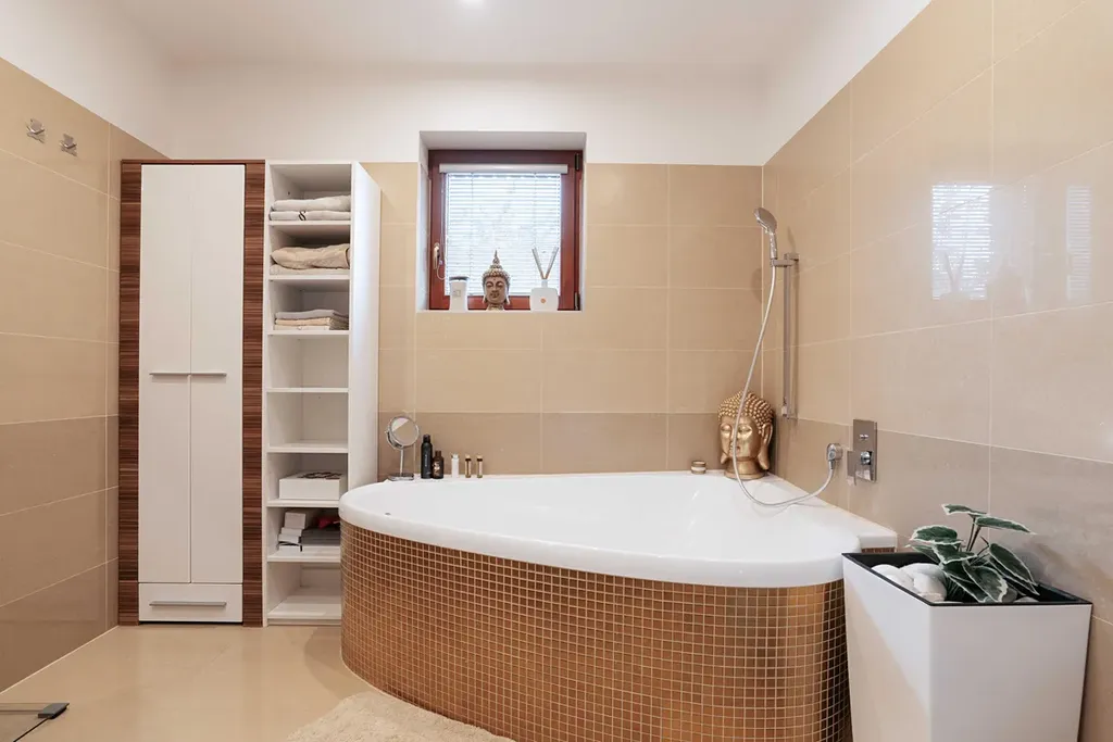 O komfortní a úsporné bydlení se stará tepelné čerpadlo napojené na podlahové vytápění, v celém domě jsou předokenní rolety.