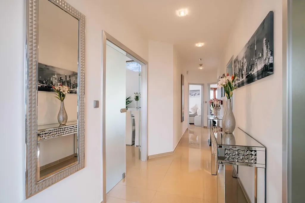 Dále zde najdete tři ložnice, dvě koupelny, šatnu a technickou místnost.