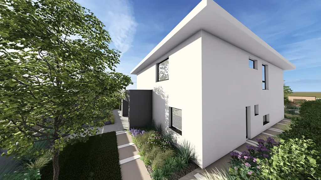 Dům vzniká na konci obce Kounice, na posledním stavebním pozemku v řadě o rozloze 945 m² – s úchvatným výhledem do okolí a rybníkem s alejí přímo na dohled. Díky betonovému plotu zde budete mít naprosté soukromí, klid a bezpečí.