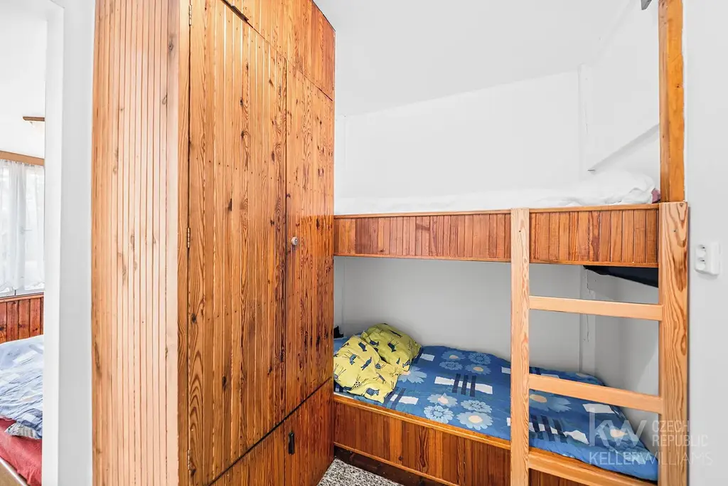 Tato útulná chata o dispozici 3+1 a velkorysých 86 m² užitné plochy je připravena stát se vaším novým domovem daleko od shonu. Její srdce bije v rytmu tradice, o čemž svědčí i původní zařízení a nábytek, které vytvářejí autentickou atmosféru a čekají na vaše nové příběhy. Konstrukce chaty kombinuje pevnou zděnou podezdívku s lehkostí dřevěných desek, což jí dodává jedinečný charakter a pocit splynutí s okolní přírodou.