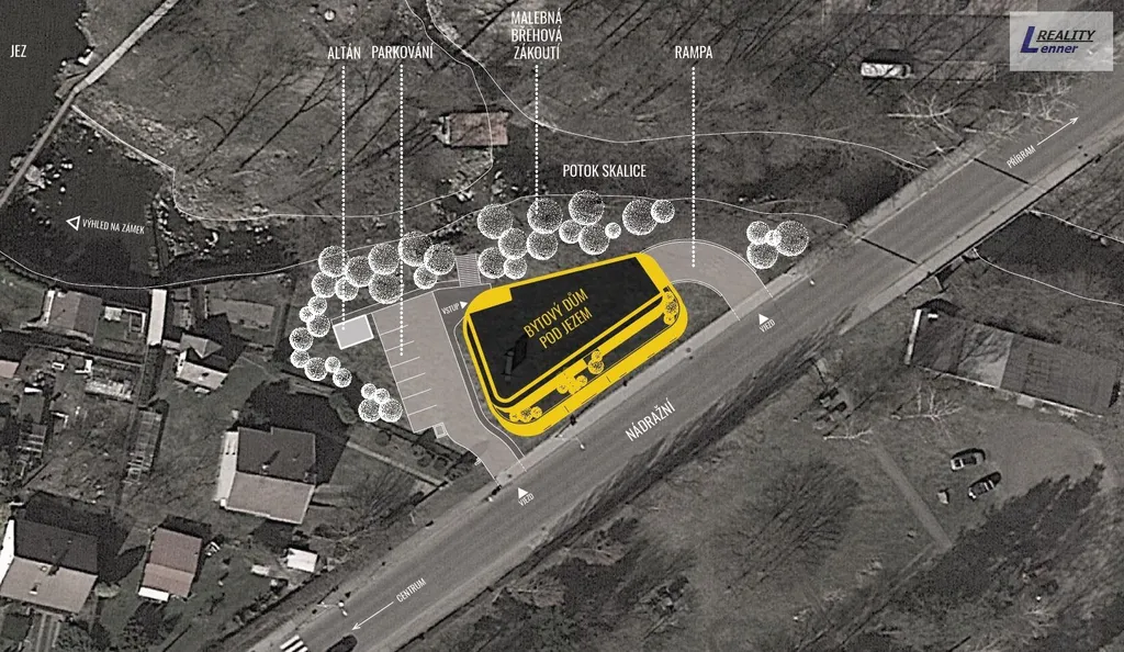 Jedná se o již poslední byt o větší dispozici 2+kk (z celkem 7 bytů 2+kk), s balkonem ve zvýšeném přízemí BD s příslušenstvím, který se bude nacházet v nově vybodovaném, moderním, byt. domu s názvem ,,Pod Jezem“, který se nyní již staví a je v plánu s dokončením na konci roku 2026 - jaro 2027.