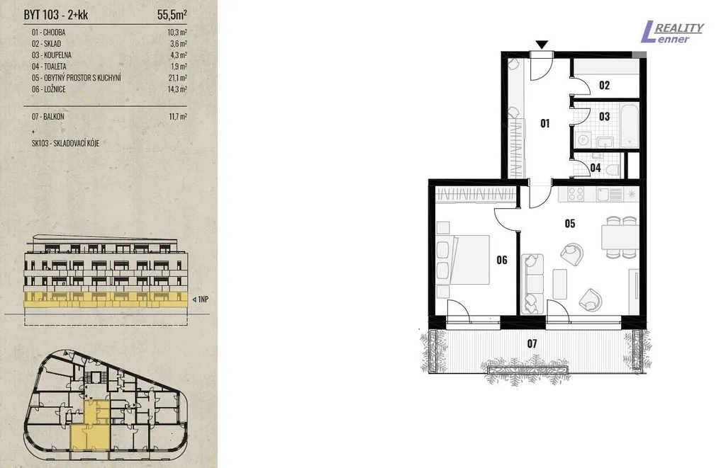 V bytovém domě s výtahem bude k dispozici celkem 17 byt. jednotek, každá vč. prostorného balkonu případně terasy, s možností vlastního parkovacího. stání a sklepní koje.