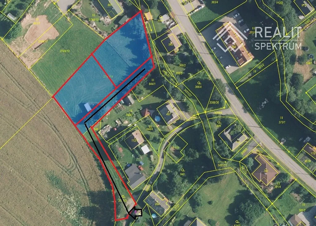 2. Chytré dělení na 2 parcely: Máme pro vás připravenou studii uvažovaného dělení. Při vybudování vnitřní obslužné komunikace o komfortní šířce 6 m (v souladu s normami) vzniknou dvě plnohodnotné parcely, každá o výměře cca 1 210 m². To je i po odečtení cesty nadstandardní velikost, která v dnešní době nabízí vysokou tržní hodnotu.