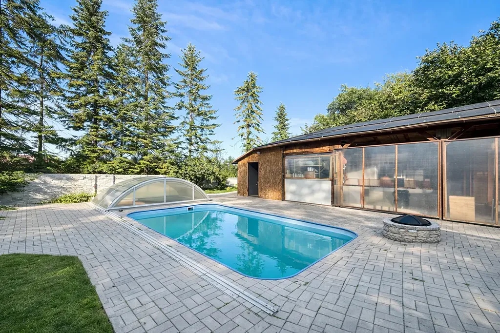 Na pozemku o velikosti 643 m2 se nachází bazén 3 x 6 m se zakrytím, dílna 35 m2, navazující vnitřní pergola 22 m2 s otevíracími elektrickými vraty a pergola 32 m 2. Dále je též na pozemku krytá garáž pro 1 větší auto 32 m2 (8 x 4 m) a navazující sklad 12 m2.