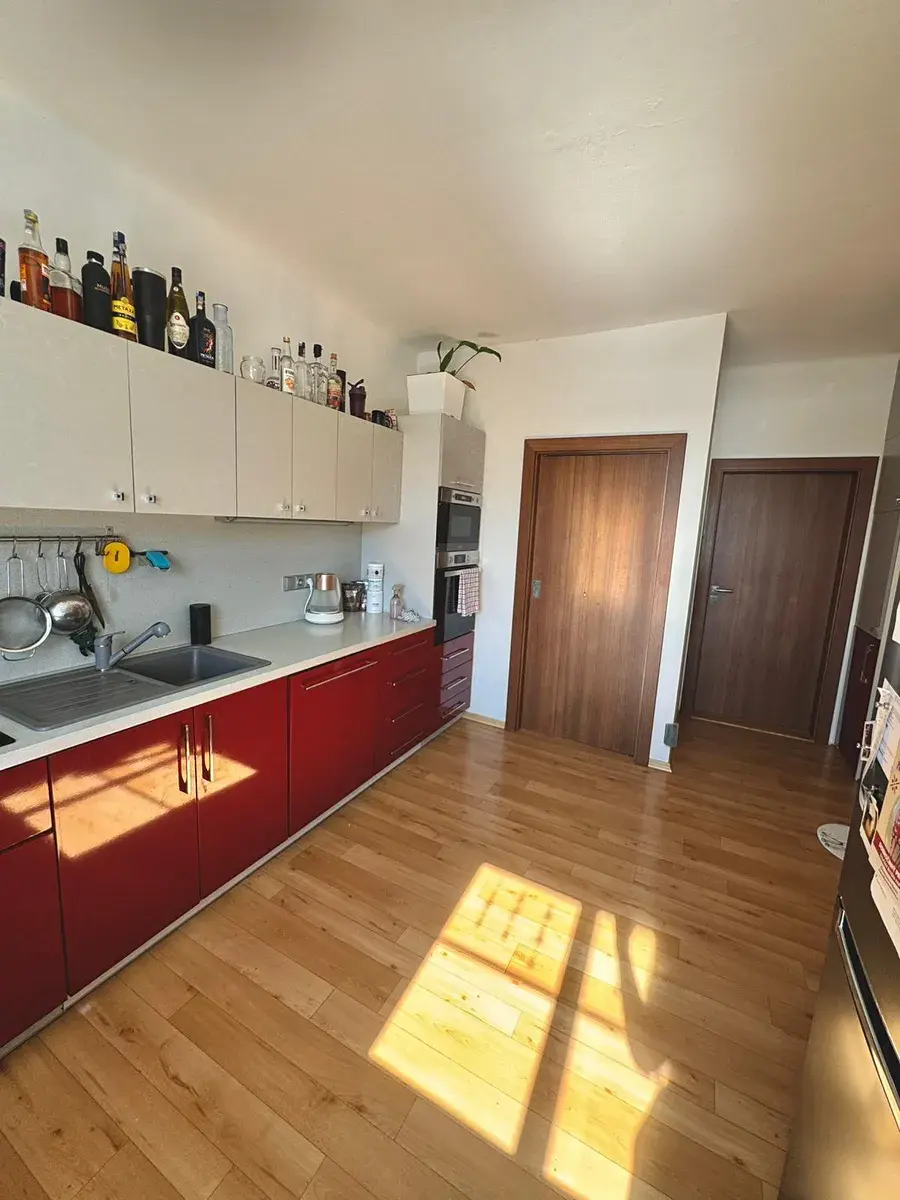 Byt nabízí velmi praktické dispoziční řešení – tři samostatné pokoje, oddělenou kuchyni, šatnu, koupelnu s vanou a samostatné WC.