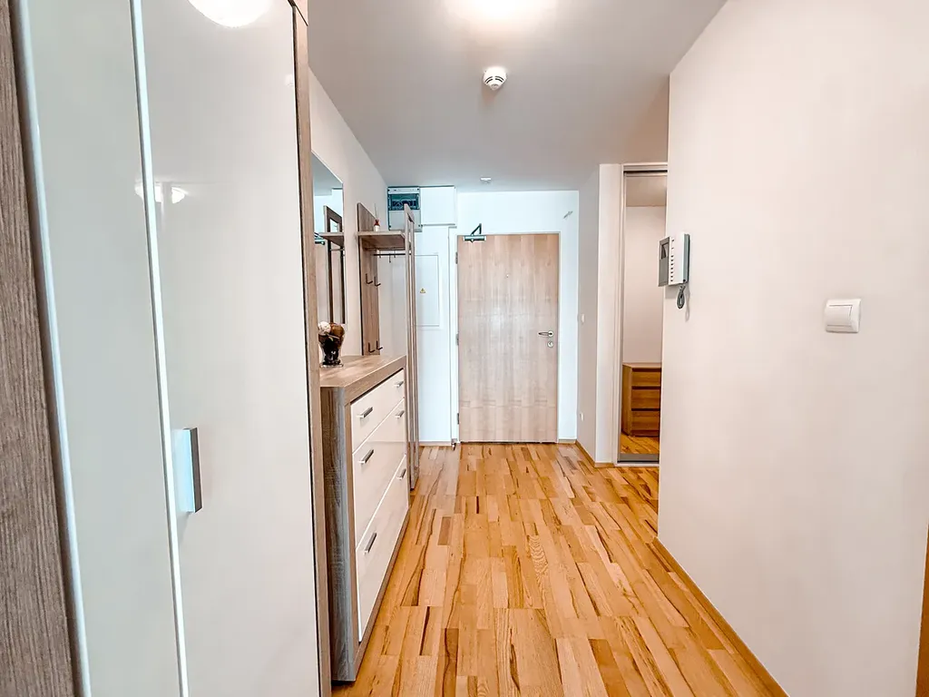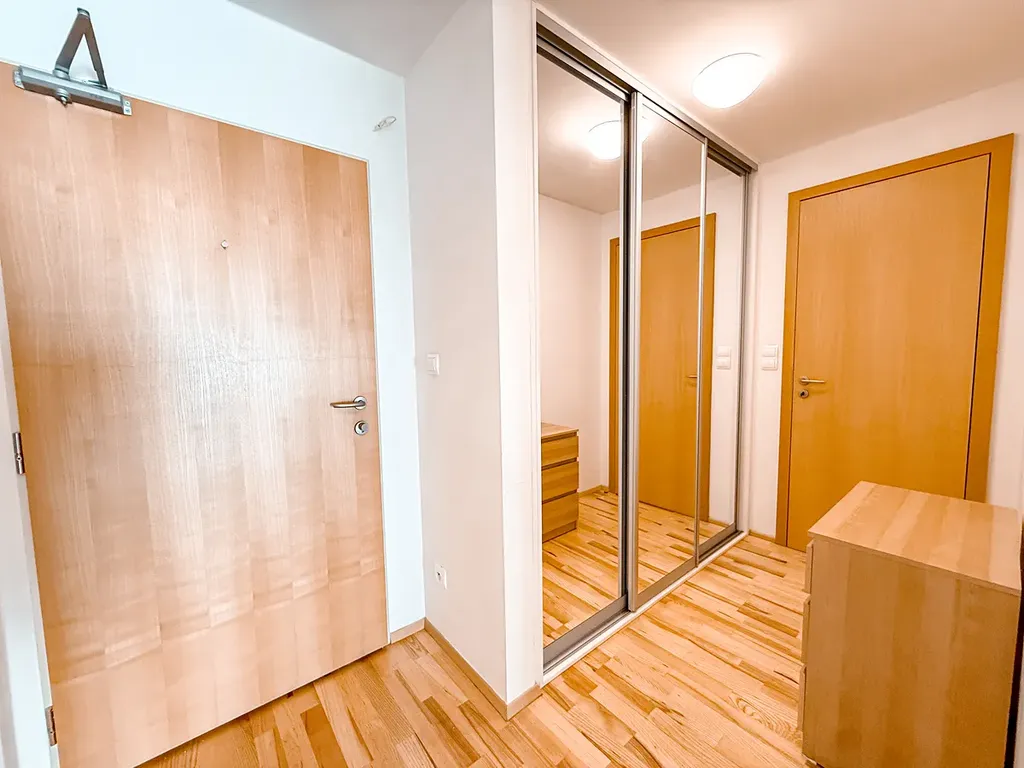 Byt nabízí velkorysý otevřený obytný prostor s plně vybaveným kuchyňským koutem, vstupní halu s dostatkem úložných prostor, koupelnu s vanou a toaletou a samostatnou šatnu / technickou místnost s pračkou. Veškerý nábytek zobrazený na fotografiích zůstává součástí bytu, včetně rozkládací pohovky.