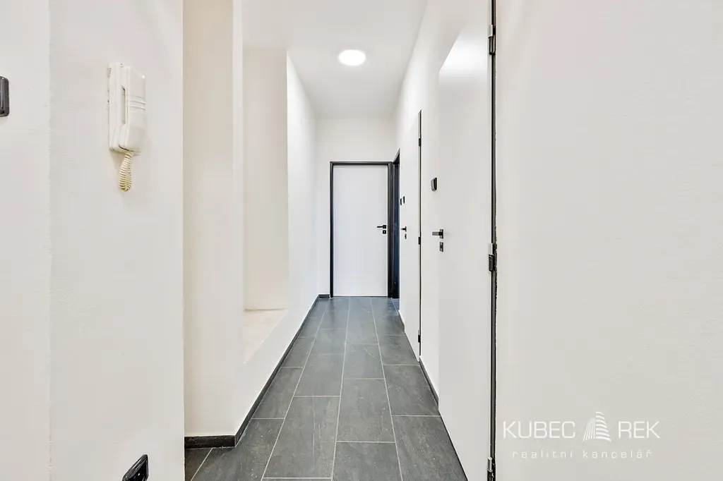 Byt prošel kompletní a velmi vkusnou rekonstrukcí, díky které je připraven k okamžitému nastěhování bez nutnosti dalších investic. Byla provedena nová elektroinstalace, instalována moderní kuchyňská linka včetně spotřebičů a celý interiér působí čistým a sjednoceným dojmem. Na podlahách v obývacím pokoji a ložnici je položeno PVC, zatímco chodba, koupelna a kuchyně jsou řešeny dlažbou v jednotném tónu, což podtrhuje celkovou harmonii prostoru. Byt je vytápěn a ohřev vody je zajištěn vlastním plynovým kotlem. K bytu náleží také sklep o výměře 13 m², který není započítán do podlahové plochy bytu, celková užitná plocha včetně sklepa tak činí 62 m².