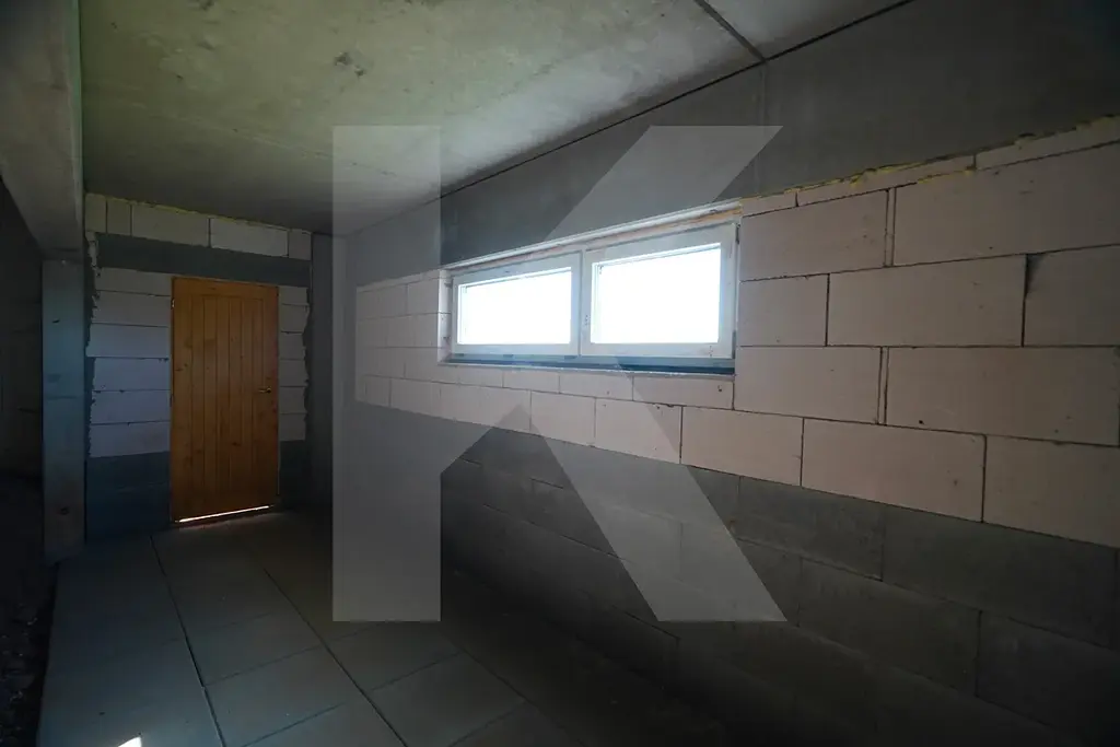 V přízemí je technická místnost s pračkou, sprchovým koutem a wc.