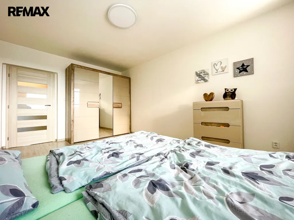 Do prostorné ložnice se dostanete přes jednu průchozí místnost, která byla využívána jako dětský pokoj, ale může také sloužit třeba jako pracovna či šatna. V ložnici se nachází šatní skříň, komoda a vstup na druhý balkon.