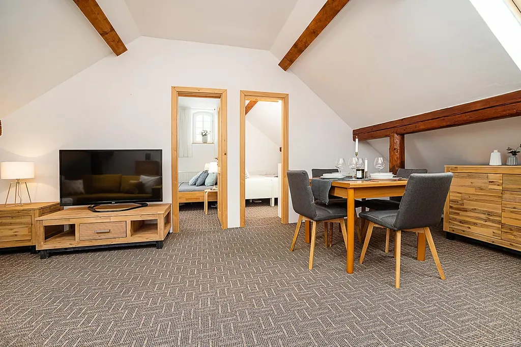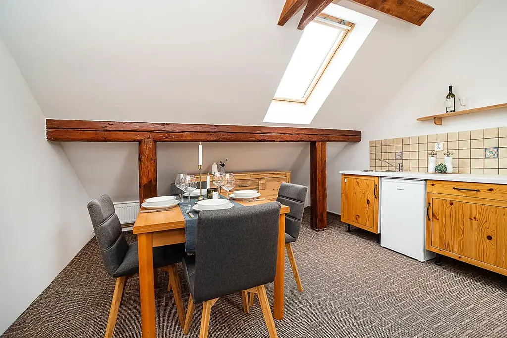 Apartmán se nachází ve stylovém apartmánovém domě, na klidném a tichém místě v obci Velká Morava. Svým majitelům tak nabízí klidné bydlení s veškerou zábavou na dosah ruky a nádherný výhled na Stezku v oblacích. Do obce Dolní Morava je to pouhých 10 minut