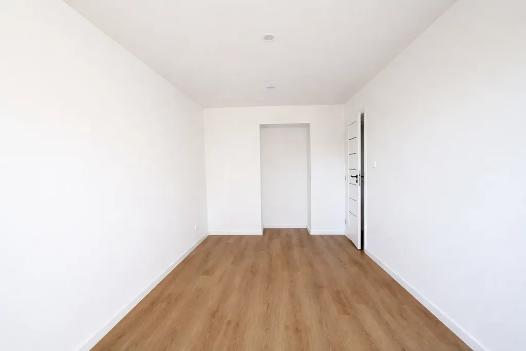 Po vstupu do bytu se nachází chodba, kde je připraven prostor pro instalaci kuchyňské linky dle vlastních představ. Dále je k dispozici koupelna s toaletou a tři samostatné pokoje, přičemž jeden z pokojů je přístupný z obývací části.