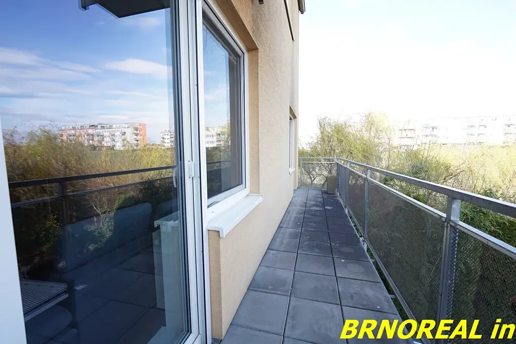 Zajímavě řešený byt o celkové podlahové ploše 58 m2 nacházející se v 2.NP. (1.patre) bytového domu postaveného v roce 2013. Bezbariérový přístup do bytu s moderním výtahem. Byt sestává ze dvou samostatných pokojů, dále obývacího pokoje spojeného s kuchyňským koutem, prostorné koupelny s vanou a WC a vstupní chodby. Dětský pokoj a obývací pokoj mají vstup na prostorný balkon, který spojuje oba pokoje, s výhledem do zahrady do klidného a tichého prostředí plného zeleně dvorního traktu se zahradou. K bytu náleží sklepní kóje cca 2 m2 v 1.NP. (přízemí) a výhradně parkovací stání cca 20 m2 přímo před domem, které budou novému nájemci plně k dispozici. Poloha bytu zajišťuje výborné světelné i tepelné podmínky s orientací oken na východ.