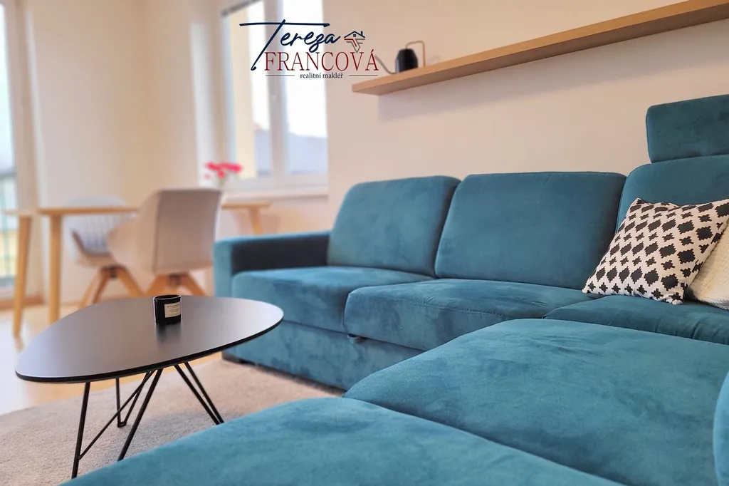 Dominantou bytu je prostorný obývací pokoj, který je vybaven kvalitní rohovou sedací soupravou a jídelním stolem. Díky svému umístění tvoří přirozené centrum bytu s přímým vstupem do ložnice, kuchyně i na balkon.