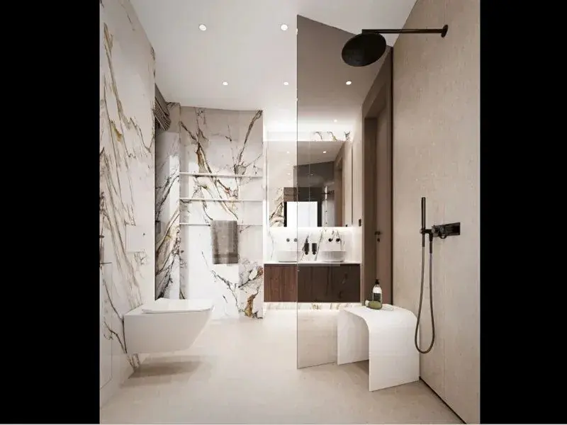 Byt dále disponuje třemi koupelnami (jedna s vanou, dvě se sprchovým koutem), dvěma samostatnými toaletami, a praktickou technickou místností / komorou vhodnou pro pračku, sušičku a další úložné potřeby. Celé uspořádání bytu klade důraz na pohodlné každodenní užívání a dostatek úložných prostor.