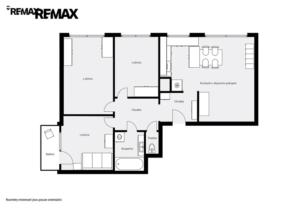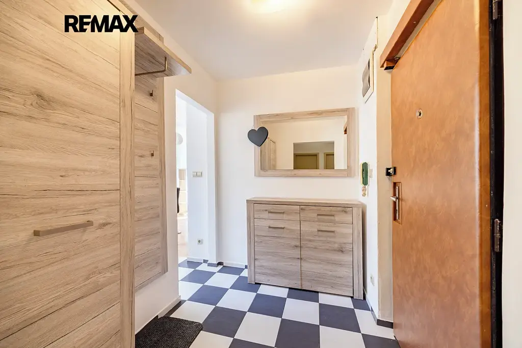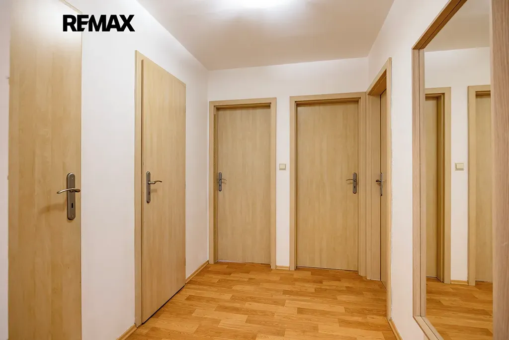 Byt nabízí ideální uspořádání pro rodinu – velkorysý obývací prostor s kuchyňským koutem, tři samostatné pokoje, prostornou vstupní halu s úložnými prostory a lodžii. Díky orientaci do zeleného vnitrobloku je zde klid a příjemná atmosféra pro každodenní bydlení.
