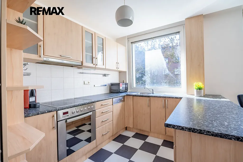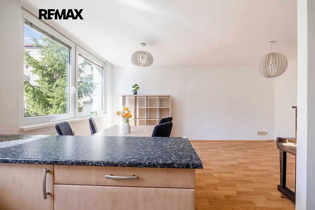Velká okna zajišťují dostatek denního světla a byt působí velmi vzdušně. Nabízí se jako částečně vybavený a je v udržovaném stavu, připravený k okamžitému nastěhování.