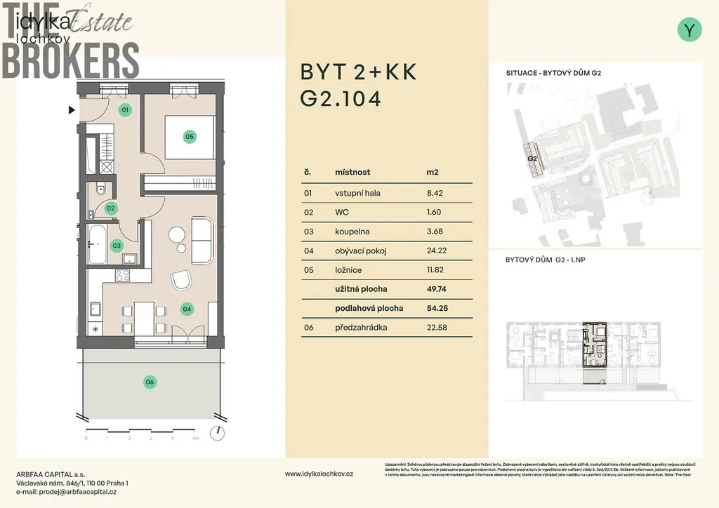 Tento prosvětlený jižně orientovaný byt se nachází v přízemí, disponuje užitnou plochou 54 m² plus předzahrádka 23 m², což nabízí příjemné a komfortní bydlení a poskytuje možnost relaxace a trávení volného času venku. Oceníte také možnost dokoupení sklepa a garážového parkovacího stání. Standardní výbavou všech jednotek jsou vytápěné podlahy, elektrické před-okenní žaluzie, možnost využití venkovní elektro nabíjecí stanice pro automobily a společná komunitní zahrada. Možnost využití instalace smart ovládání bytu na dálku v rámci klientských změn.