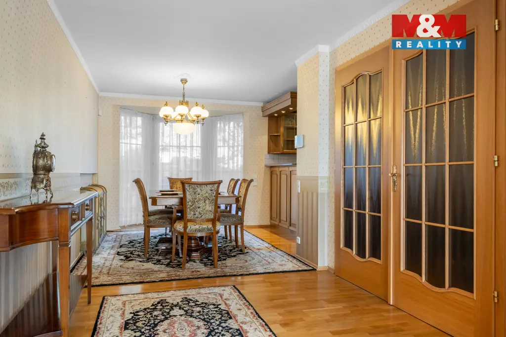 Nabízíme k prodeji nadstandardní, kompletně vybavený rodinný dům v prestižní části Modřan. Tato výjimečná nemovitost o 4 nadzemních podlažích představuje dokonalou kombinaci reprezentativního bydlení a soukromí. Dominantou interiéru je velkorysý obývací pokoj s krbem a prostorná, moderně vybavená kuchyně s jídelnou.
