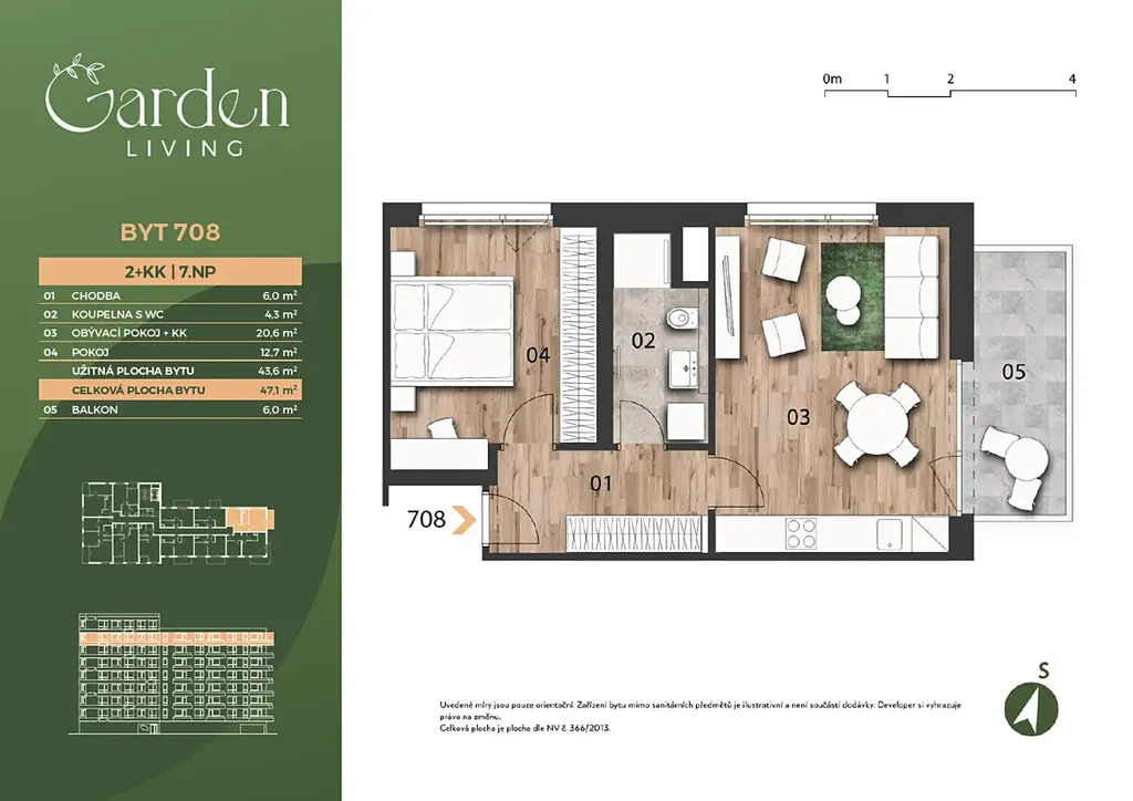 Byt působí velmi světlým a vzdušným dojmem díky velkým oknům a otevřenému prostoru. Dispozice je navržena s důrazem na praktičnost i komfort – vstupní chodba s místem pro úložné řešení, koupelna s WC, prostorný obývací pokoj s kuchyňským koutem a samostatná ložnice, která nabízí dostatek soukromí.