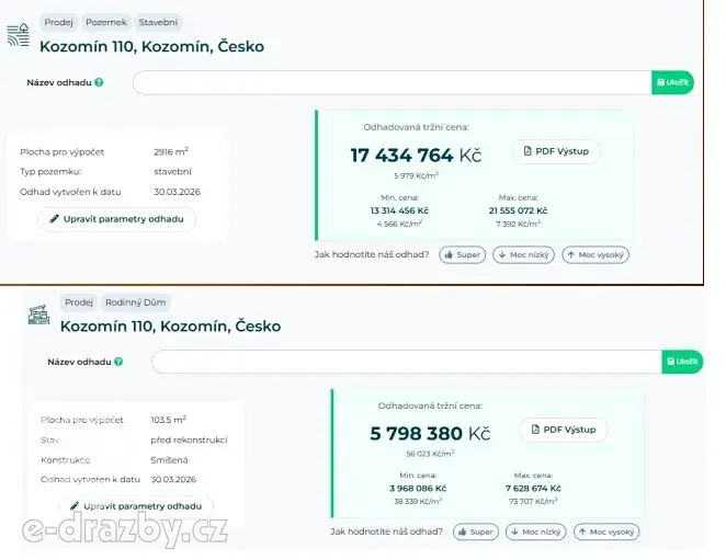 Adresa nemovitosti je: Kozomín 110, 27745 Kozomín.