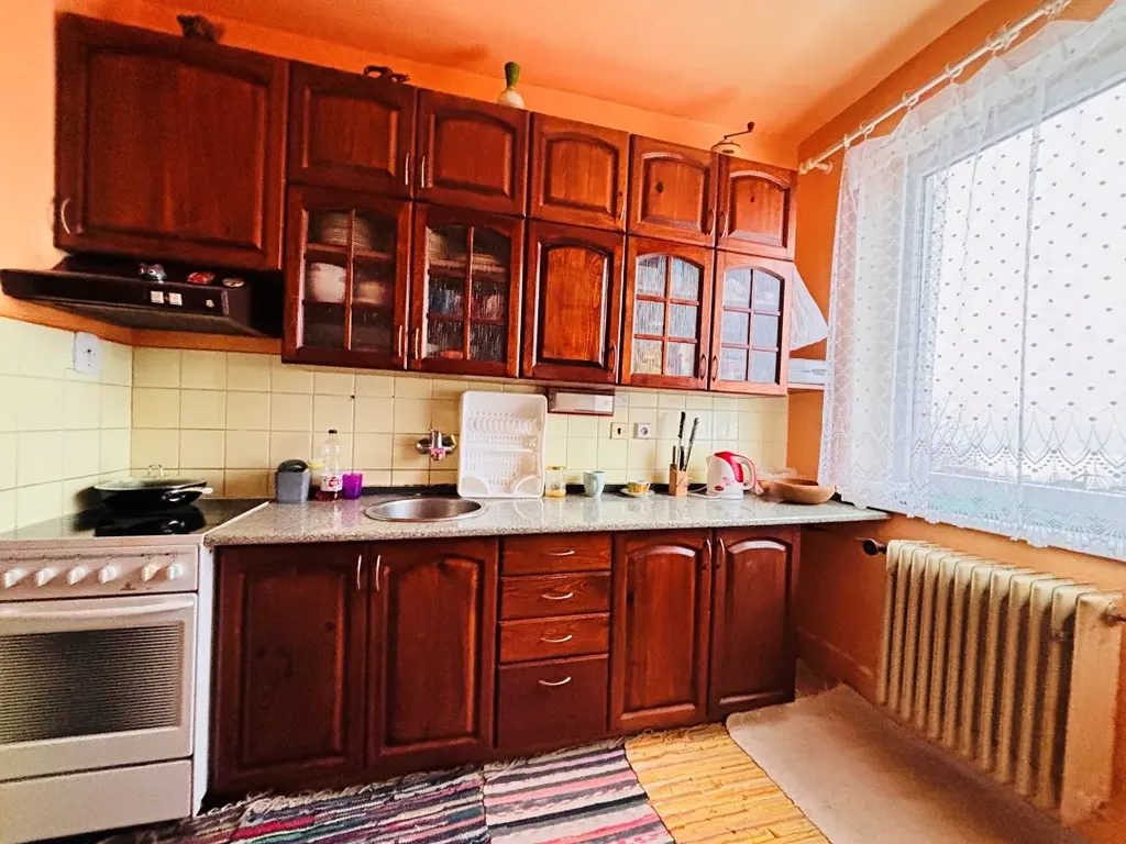 Jedná se o bytovou jednotku s výměrou 91,5m2. Byt tvoří chodba, obývací pokoj se vstupem na balkon, 2 ložnice, kuchyně se spižírnou, koupelna a WC. V celém bytě proběhla výměna oken za plastová. Výhodou jsou neprůchozí pokoje. Přidanou hodnotou je velkorysý balkon (2 vstupy), kde můžete v létě i grilovat. Vytápění bytu zajišťuje kotel na tuhá paliva umístěný v suterénu domu, ohřev vody řešen kotlem na TP v kombinaci s el. bojlerem (umístěn v koupelně). Příslušenství k bytu tvoří sklep (š,5m2), sklad paliva v suterénu a před domem hospodářský přístavek.