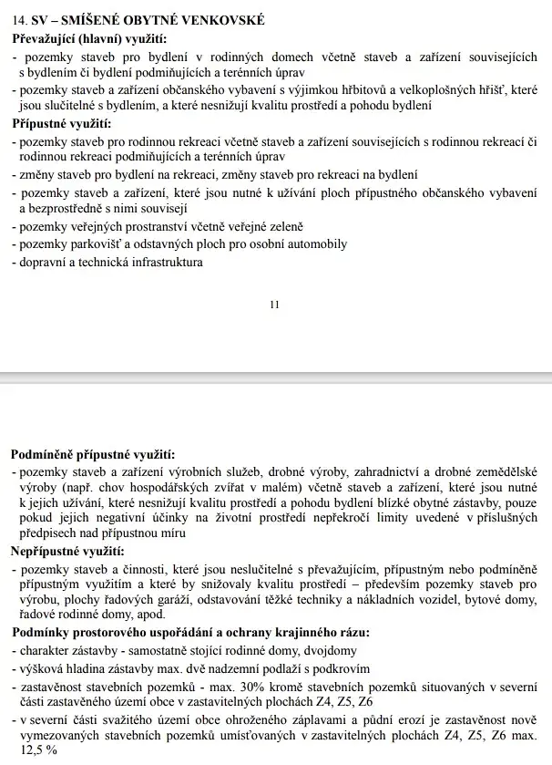 1) aktuální plocha k výstavbě RD cca 400m2 (SV – bydlení venkovské)
