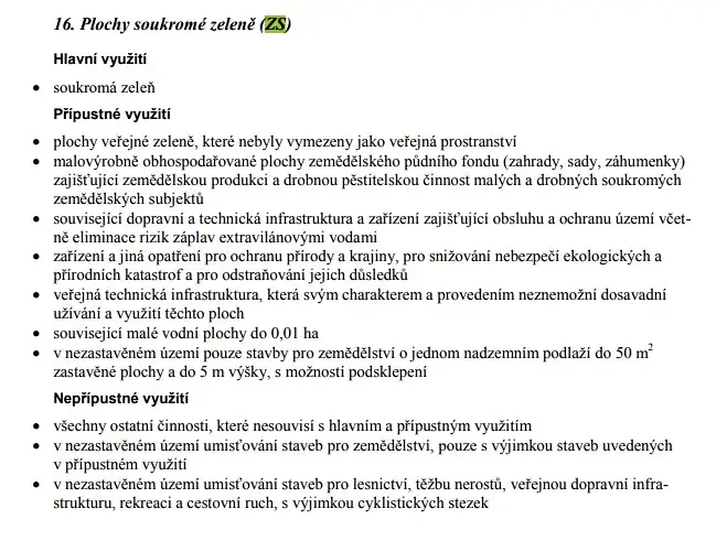 Pozemek je v platném územním plánu obce označen ZS – soukromá zeleň.