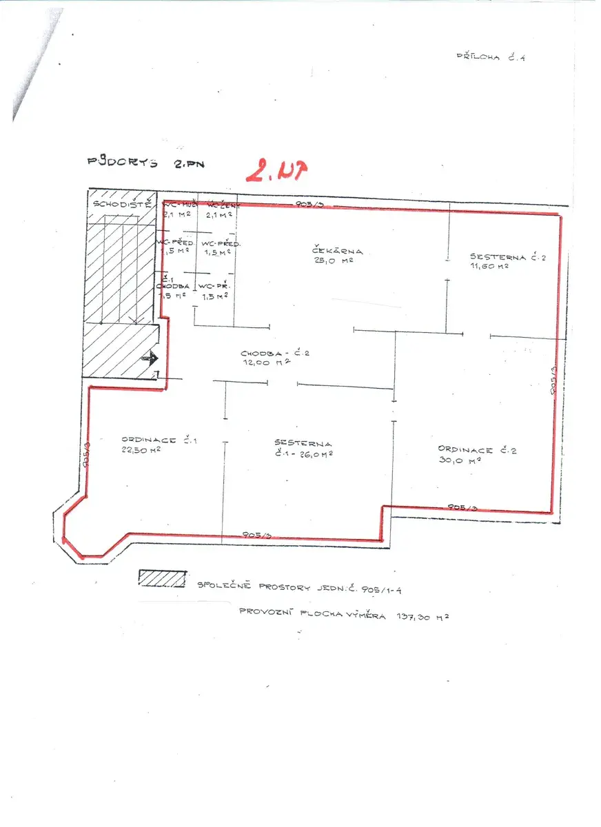Nabízená nebytová jednotka se nachází ve 2.NP a její výměra činí velkorysých 137m2.
