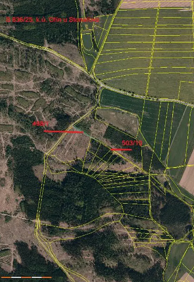 Jedná se o prodej 2 lesních pozemků parc. č. 498/1 o výměře 517 m2 a parc. č. 503/10 o výměře 411 m2, nacházejících se západně od obce Stonařov, úzkého protáhlého tvaru, uvnitř komplexu privátních lesů. Pozemek parc. č. 498/1 je bezlesí, na pozemku parc. č. 503/10 se nachází zbytek listnatých stromů a keřů.