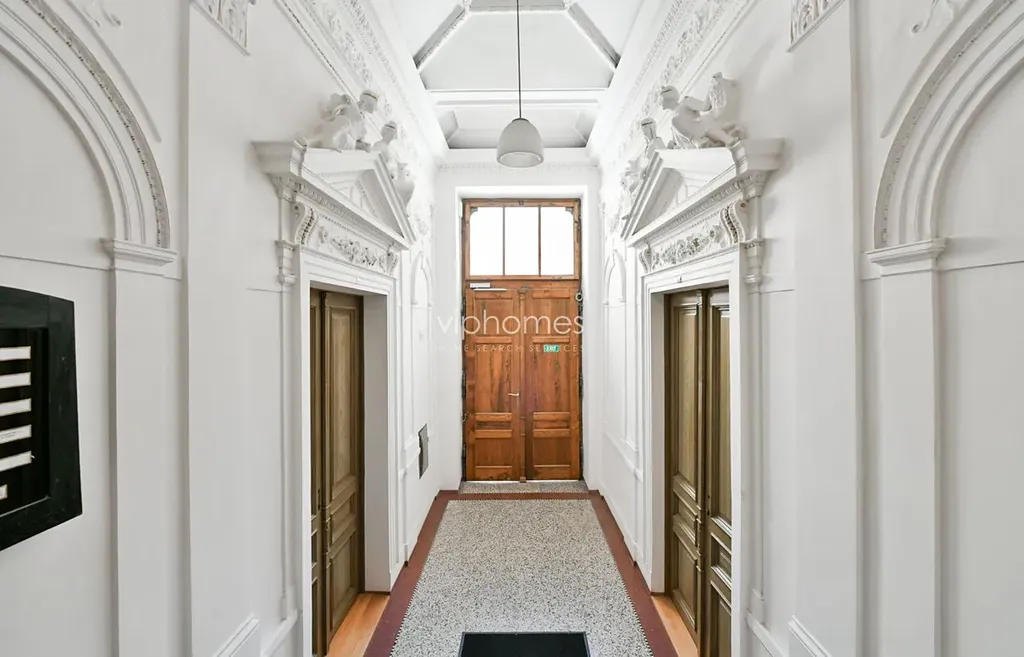 Zrekonstruovaný secesní dům z r. 1902 s výtahem a kamerovým systémem, udržované společné prostory, renovované dubové parkety. Měsíční nájemné 38 000 Kč. Kauce ve výši dvou měsíčních nájmů.