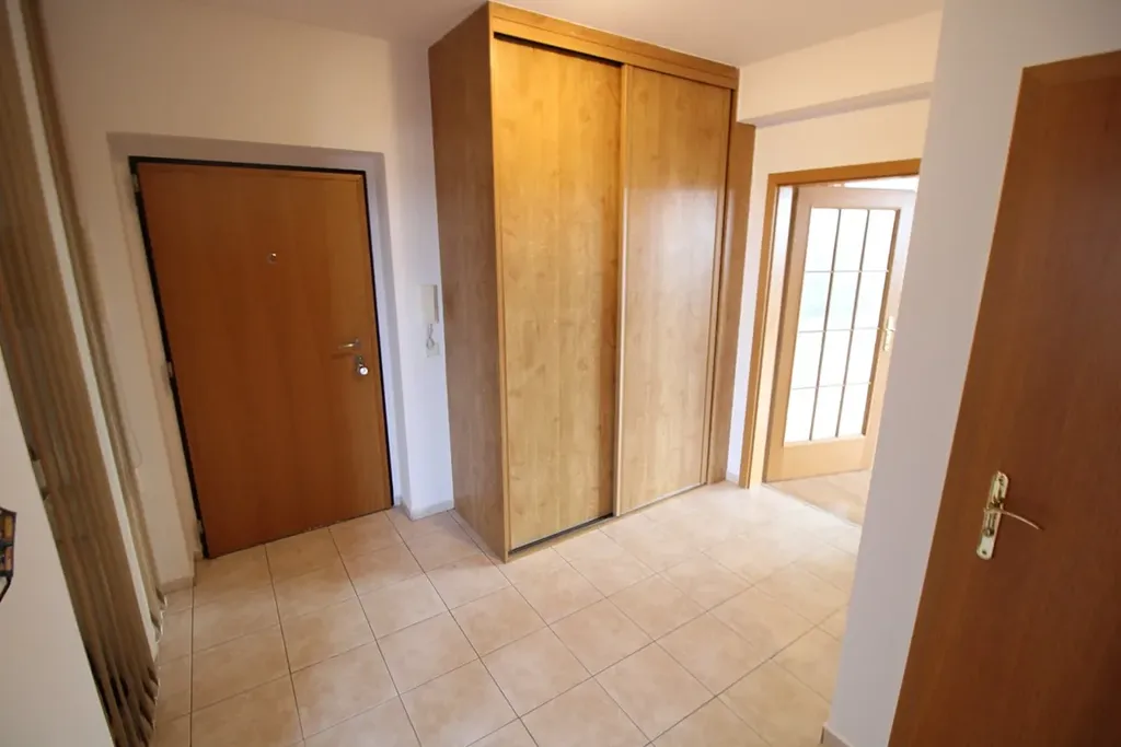 Dominantou bytu je prostorný obývací pokoj s jídelní částí a kuchyňským koutem, odkud je přímý vstup na balkon s příjemným výhledem. Ložnice disponuje praktickou šatnou.