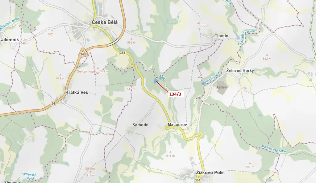 Lesní pozemek o výměře 8330 m2, parcelní číslo 134/3, podíl 1/1, katastrální území Macourov, obec Žižkovo Pole, obec s rozšířenou působností Havlíčkův Brod, okres Havlíčkův Brod, Kraj Vysočina.