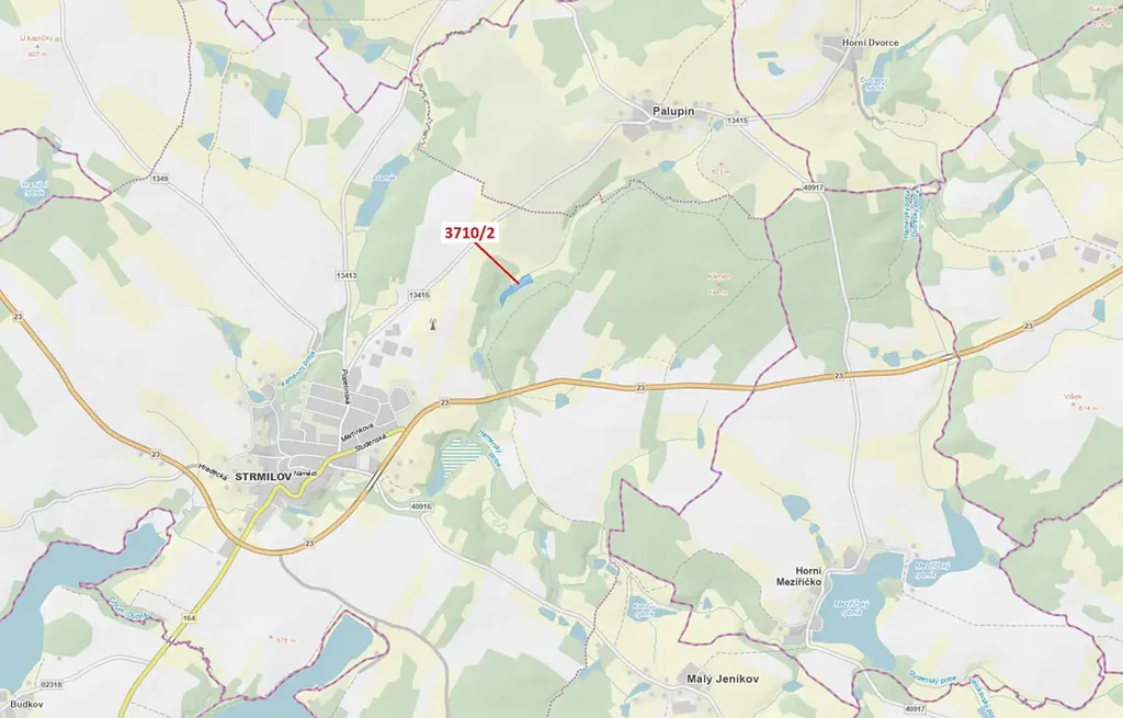 Trvalý travní porost o výměře 9096 m2, parcelní číslo 3710/2, podíl 1/1, katastrální území Strmilov, obec Strmilov, obec s rozšířenou působností Jindřichův Hradec, okres Jindřichův Hradec, Jihočeský kraj.