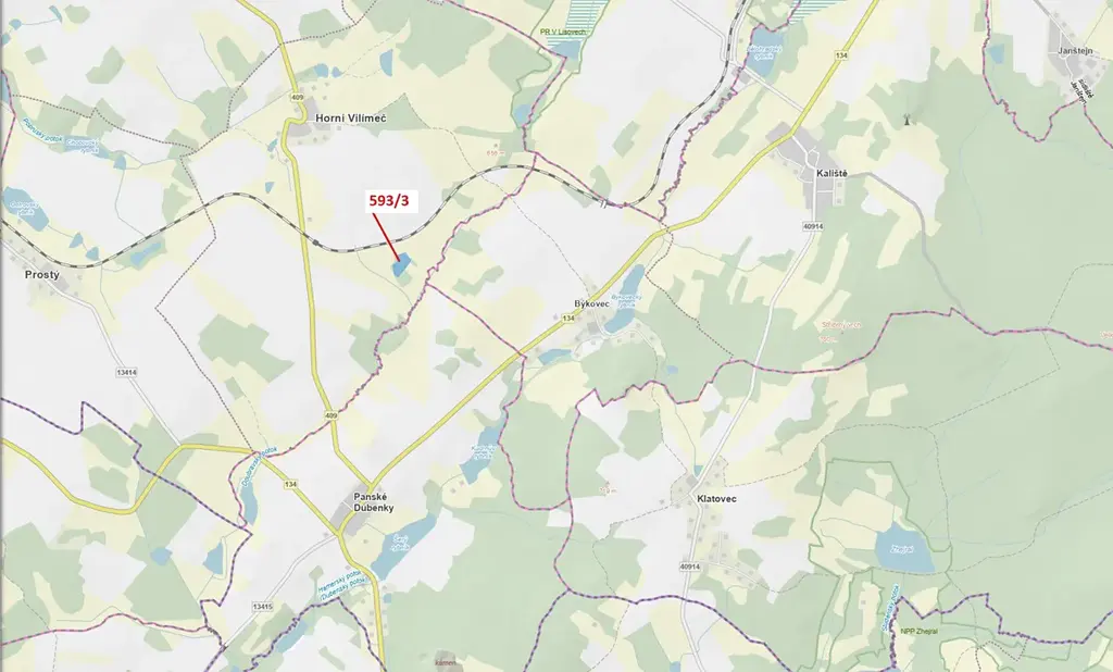 Lesní pozemek o výměře 9119 m2, parcelní číslo 593/3, podíl 1/1, katastrální území Horní Vilímeč, obec Počátky, obec s rozšířenou působností Pelhřimov, okres Pelhřimov, Kraj Vysočina.