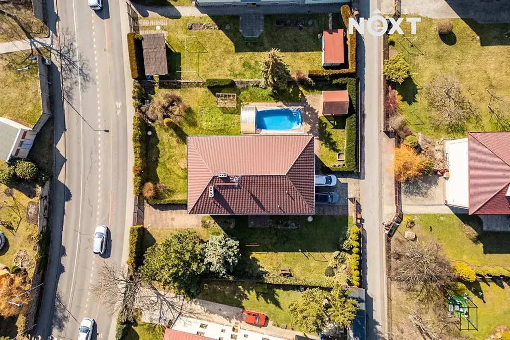 Pozemek: Celkem 1 157 m² (zahrada 993 m² s bazénem).