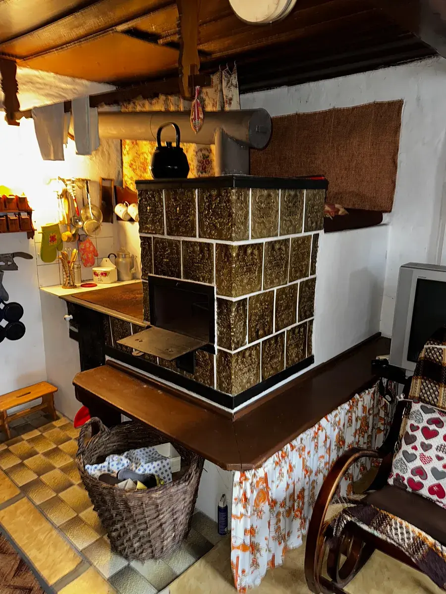 Vytápění je zajištěno osvědčenými kamny na tuhá paliva, která jsou v kombinaci s kachlovými kamny nejen funkční, ale i esteticky velmi atraktivní součástí interiéru.