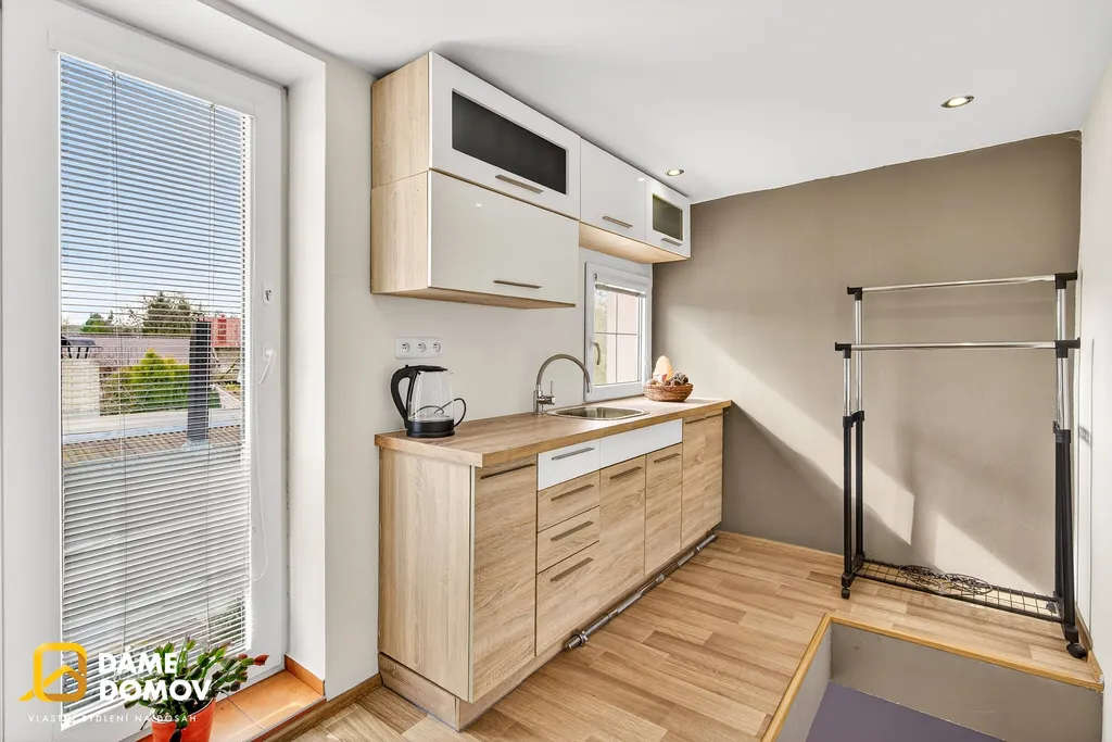 Velkou výhodou je také samostatná bytová jednotka 1+kk, která je aktuálně využívána jako relaxační zóna. Nachází se zde i sauna, která umocňuje pocit pohodlí a odpočinku. Tento prostor může zároveň skvěle posloužit pro ubytování návštěv nebo jako zázemí pro vícegenerační bydlení, kdy má každý své soukromí.