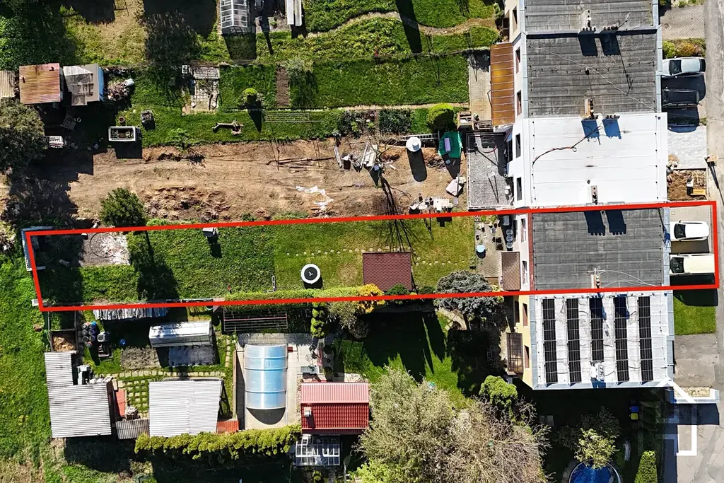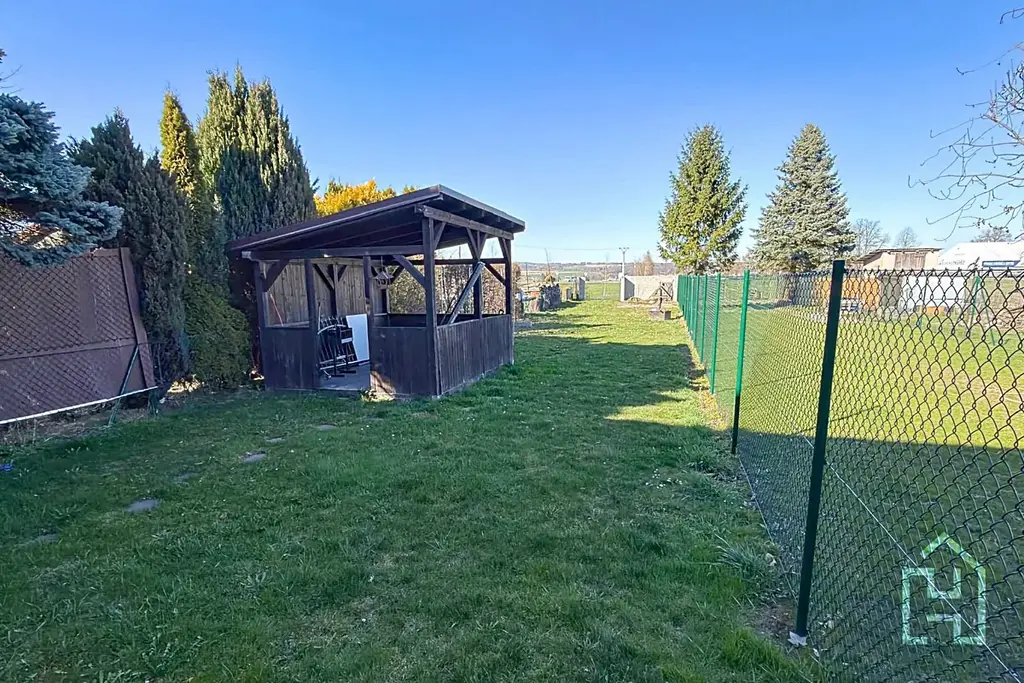 K domu náleží rovinatá zahrada s již vybudovanou pergolou. Parkování je možné přímo před domem, kde jsou k dispozici dvě parkovací místa. Celková plocha pozemku je 474 m².