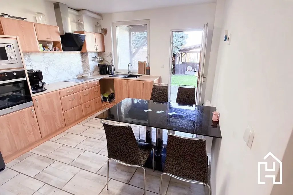 Dům disponuje dvěma koupelnami, čímž se výrazně zvyšuje komfort každodenního fungování. Součástí je plně vybavená kuchyň s přímým vstupem na zahradu a moderní vytápění řešené tepelným čerpadlem. Nemovitost je navíc kompletně podsklepená, takže nabízí dostatek úložných prostor i zázemí pro další využití.