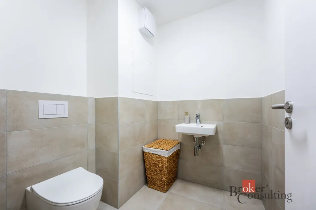 Byt se pronajímá z velké části vybavený. Další velkou výhodou je jedno rozměrné garážové stání a sklep. Nájemné činí 22.000,-Kč měsíčně bez záloh na energie a služby. Majitelé požadují kauci ve výši jednoho měsíčního nájemného, provize RK je ve výši jednoho měsíčního nájemného + 21% DPH.