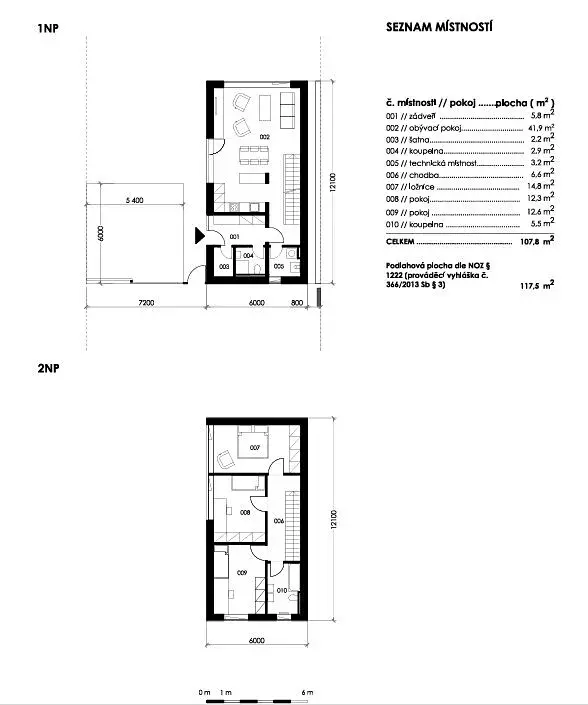 Praktické řešení: Všechny pokoje v patře jsou samostatně přístupné a neprůchozí. K dispozici je komora a technická místnost s přípravou na pračku.