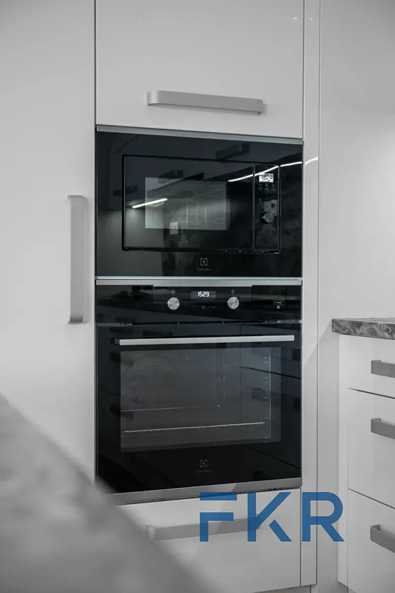 Dominantou obytného prostoru je velkorysá kuchyně s ostrůvkem a jídelním stolem. Interiér pracuje s moderními prvky a vyváženou paletou barev, kterou doplňuje dřevěný dekor podlah a citlivě sladěné provedení koupelen.