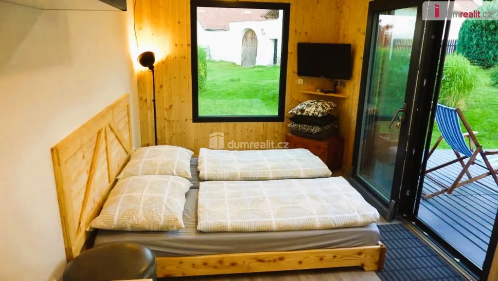 Kuchyně - kuchyňská linka vč. dřezu a baterie, vestavěná plynová dvouplotýnková varná deska na PB, lednice (gorenje), přípojka na pračku.