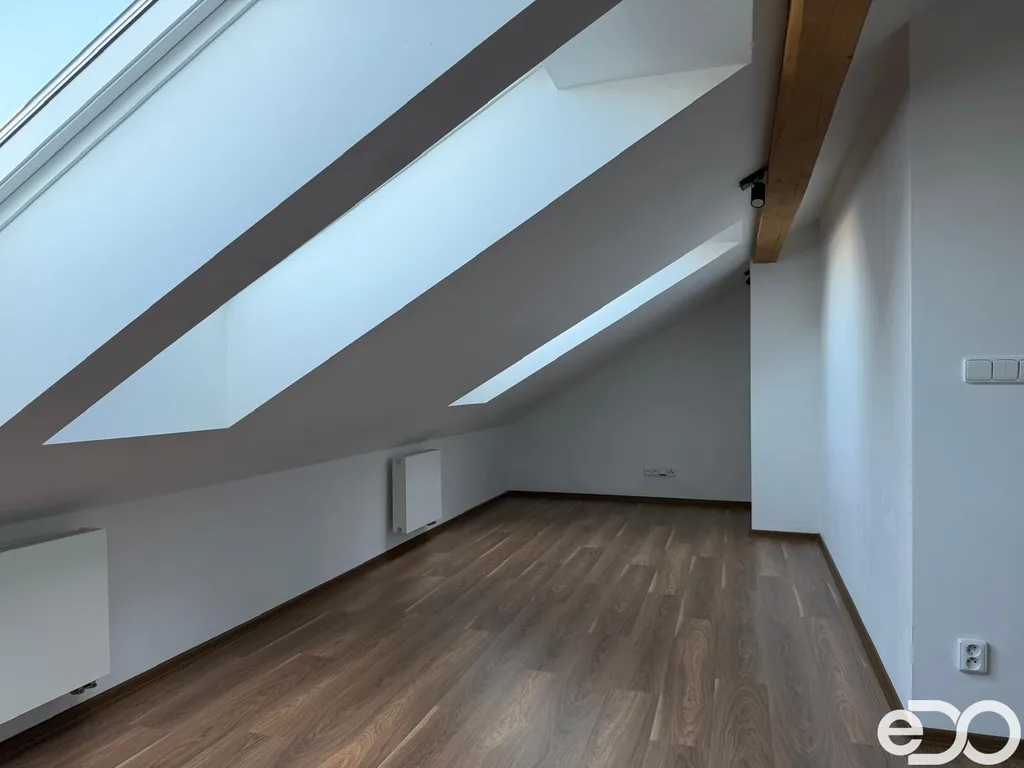 V podkroví se nachází otevřený prostor o velikosti 20 m² se třemi velkými střešními okny, který lze využít například jako ložnici, pracovnu nebo odpočinkovou zónu. Na podlahách v celém studiu je nová krytina v dekoru tmavého dřeva a v obou patrech jsou rozvedeny datové sítě. Vytápění je řešeno vlastním plynovým kotlem, přičemž zateplený plášť budovy a izolační trojskla v oknech pomáhají snižovat náklady na vytápění.