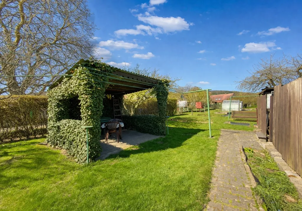 Celková výměra pozemku je cca 1.238 m², z toho zahrada tvoří přibližně 991 m². Na pozemku se nachází také užitková studna, ovocný sad se stromy (třešně, švestka, višeň, jabloně), dále králíkárna, kůlny, hospodářské stavby, černá kuchyň, malý sklep, několik přístaveb a velká garáž pro dva vozy. Nemovitost tak nabízí opravdu široké možnosti využití a velký potenciál pro někoho, kdo hledá prostor a zázemí.