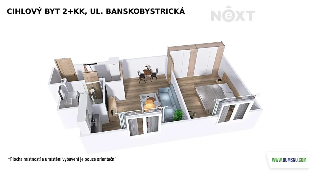 Byt v osobním vlastnictví o velikosti 2+kk s výměrou 44 m2 se nachází se v 3.NP cihlového domu, který je zrekonstruovaný, stejně jako samotný byt.