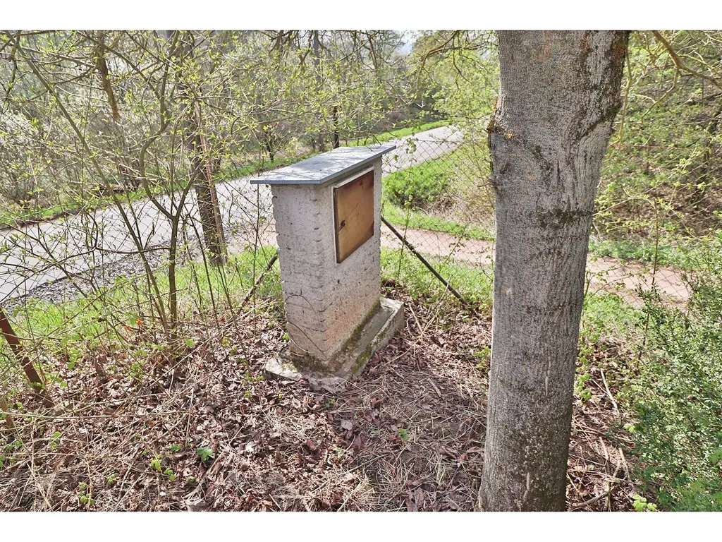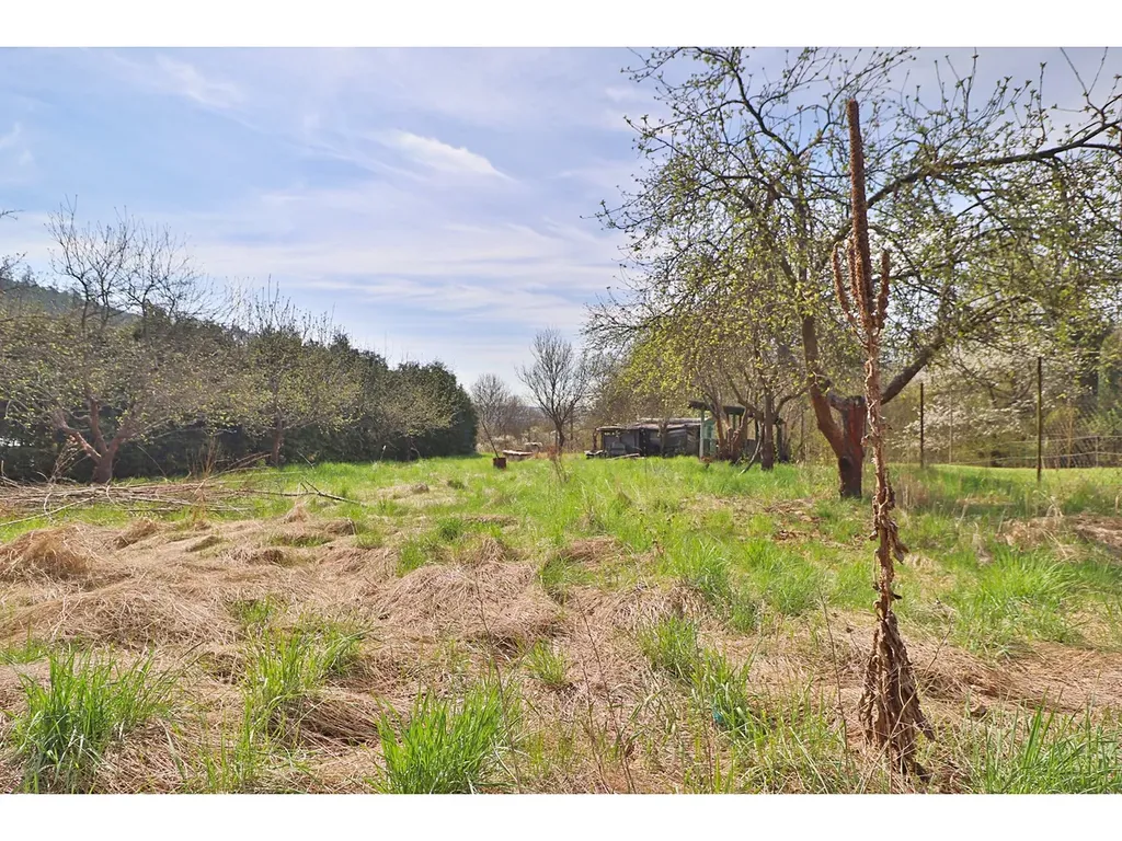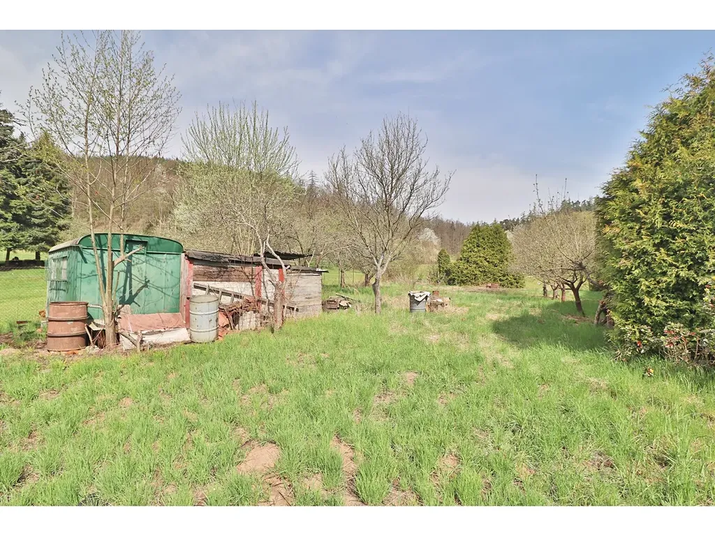 Spodní část pozemku tvoří oplocená zahrada s ovocnými stromy a menší maringotkou, vhodnou pro zázemí při rekreaci. Pozemek dále plynule přechází do mírně svažité části a končí na hranici lesa, což zajišťuje dostatek soukromí i krásné přírodní prostředí.