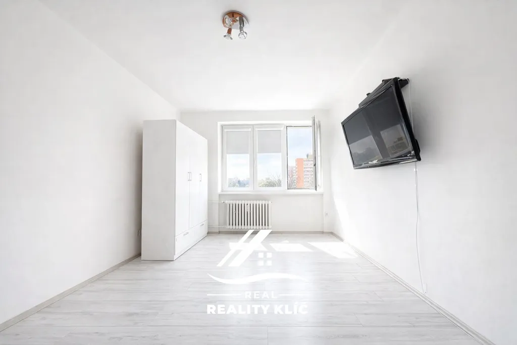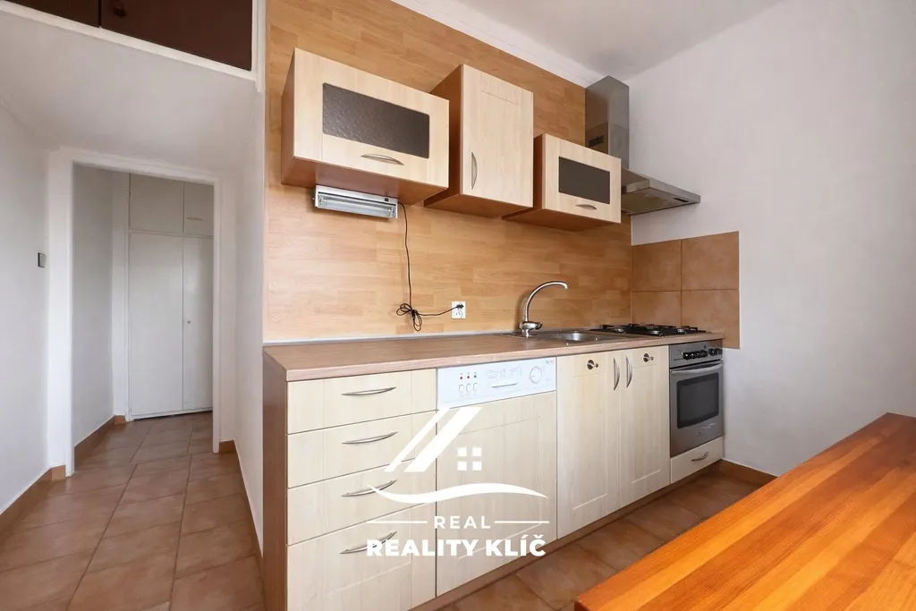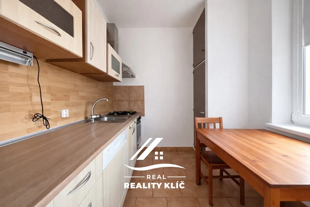 Dispozice zahrnuje kuchyň s kuchyňskou linkou vybavenou spotřebiči, spíží, jídelním stolem a lednicí. Dále zde naleznete samostatnou místnost vedenou jako ložnici, ve které se nachází vestavěná skříň a televize. Koupelna je vybavena sprchovým koutem a disponuje pračkou a sušičkou. Součástí bytu je také samostatné WC.