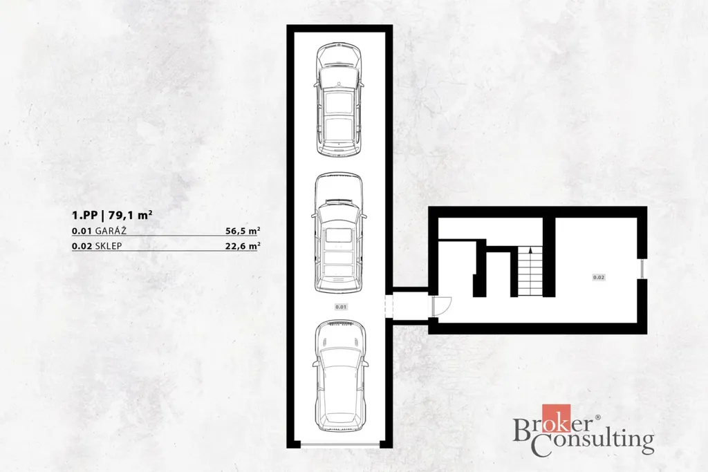 Garáž pro tři auta = žádné hledání místa, plus prostor na dílnu nebo sklad.